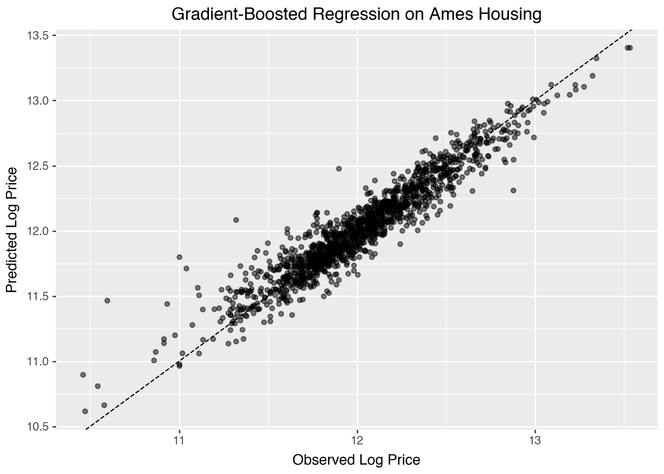 The Ames Housing data are used to illustrate a regression tree model for predicting log house price.