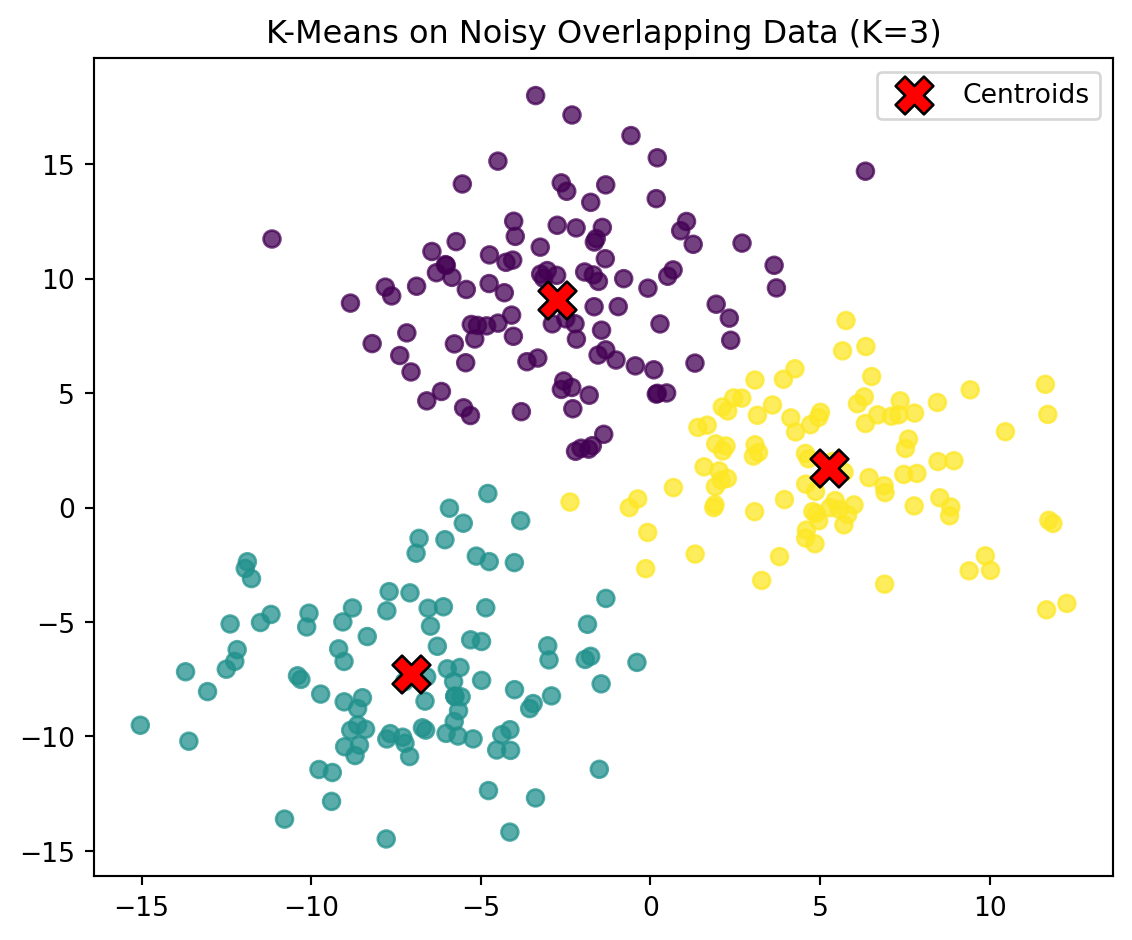 Cluster overlap shows that Versicolor and Virginica are harder to separate, which matches real biological patterns.