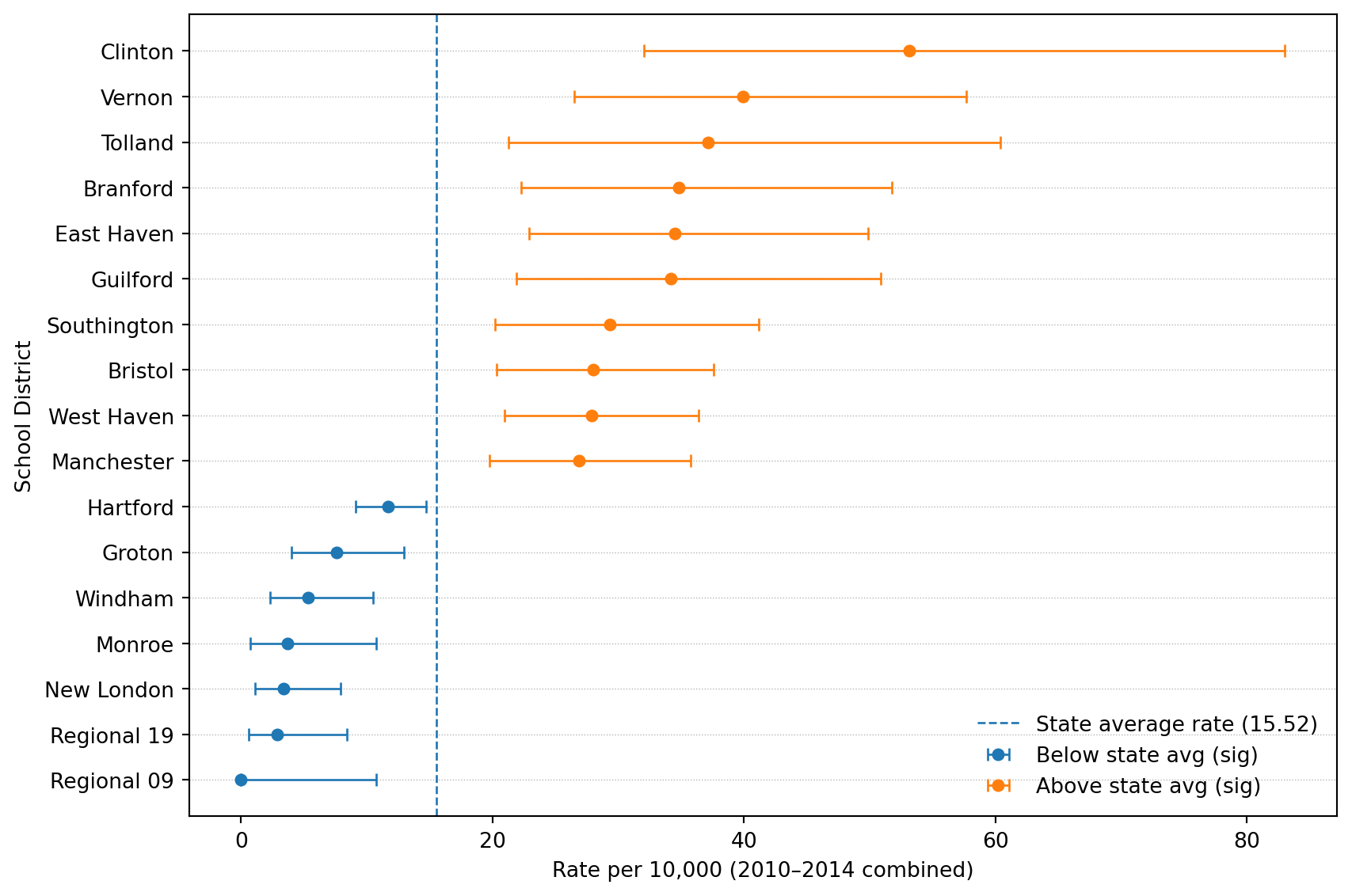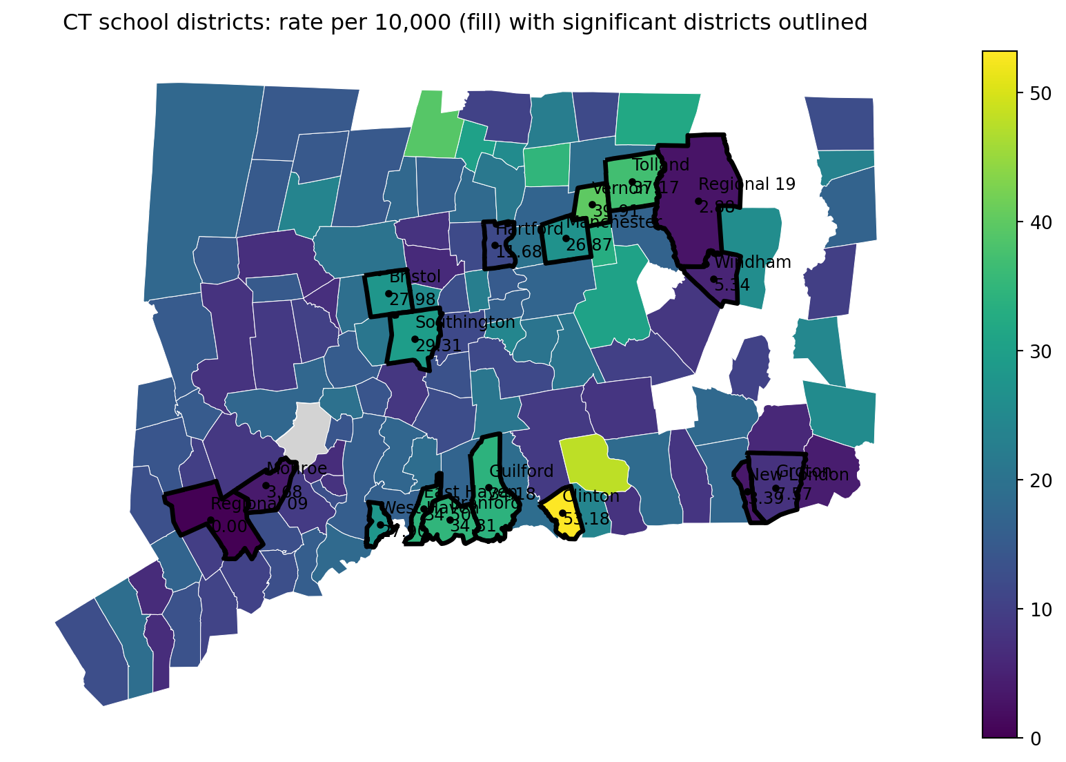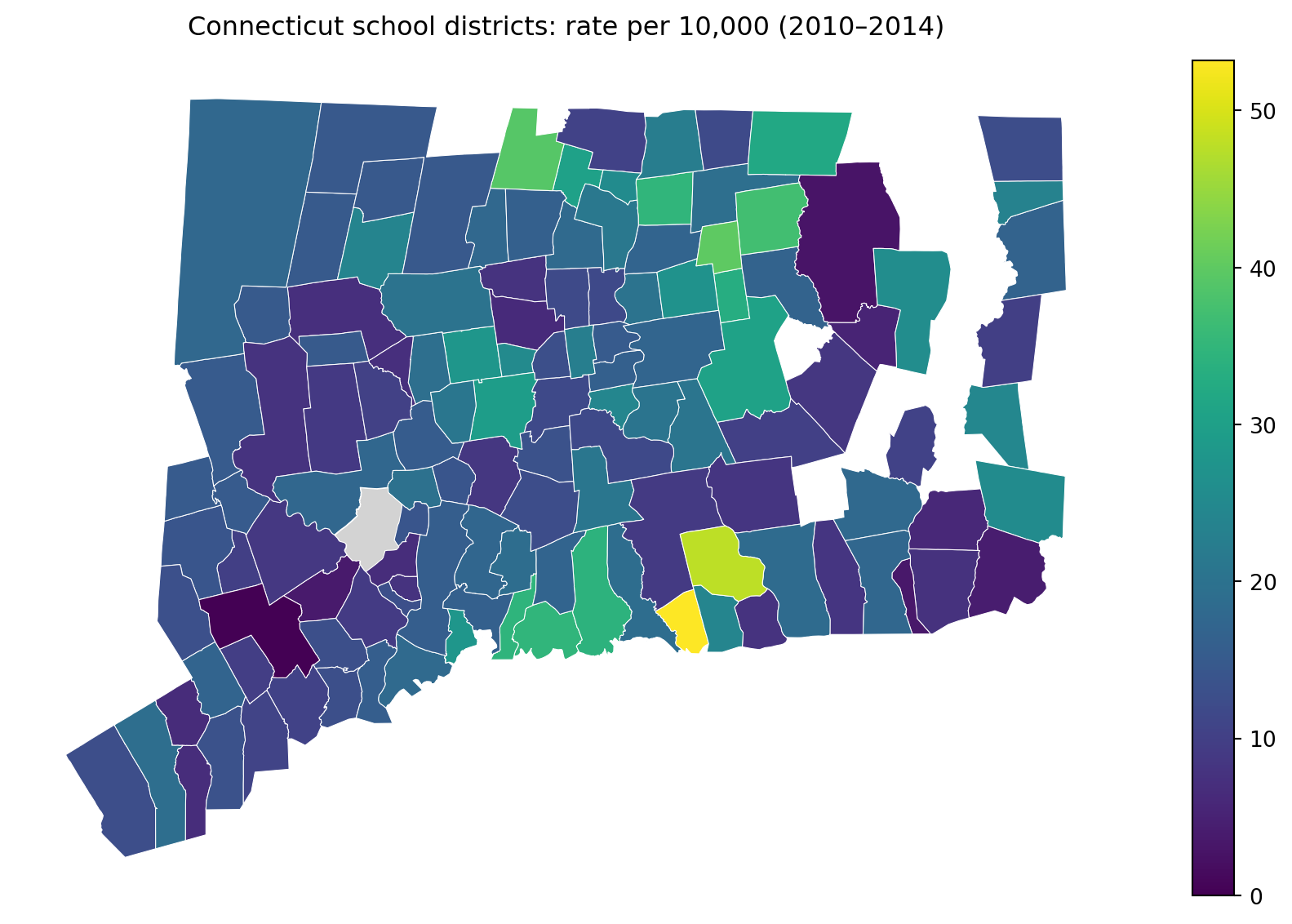 Our goal is to identify communities and school districts with unusually high risk. That means we will not model individual-level outcomes. Instead, we will work with aggregated counts: