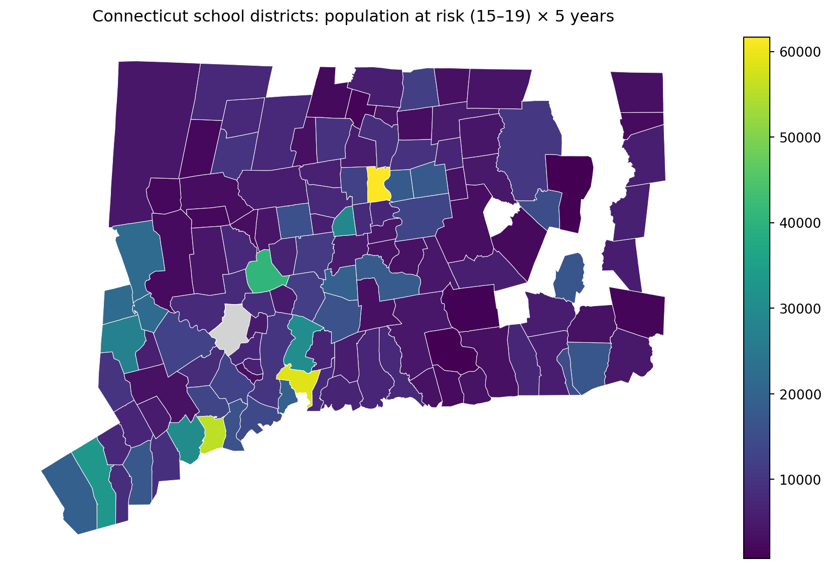 To compare districts fairly, we also need a denominator: the population at risk (e.g., adolescent population in each district). This is what turns counts into rates.