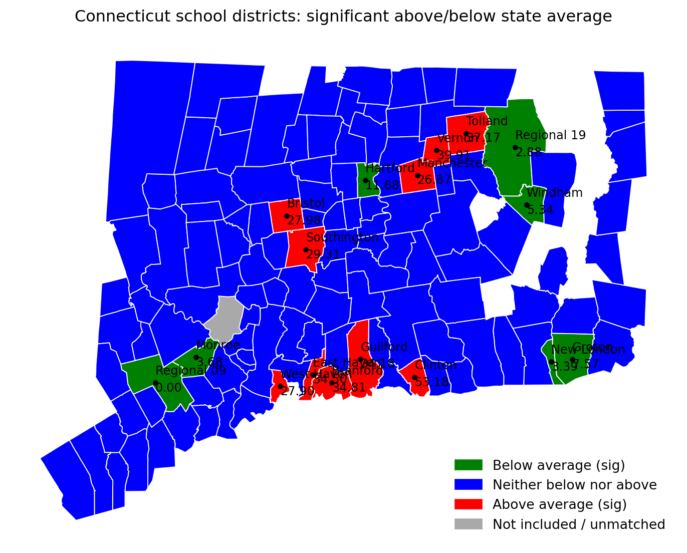 | 0 | Ansonia School District | ALL2010 | 1 | 2010 | -1.269748 | -1.663473 | 1289.310 | 7.161862 | Ansonia School District | 7.161862 |