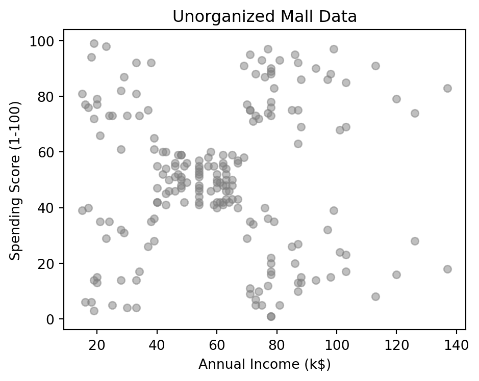 - Goal: Find hidden patterns and structure in unorganized, raw data. The objective is to minimize the sum of distances between data points and their assigned clusters.