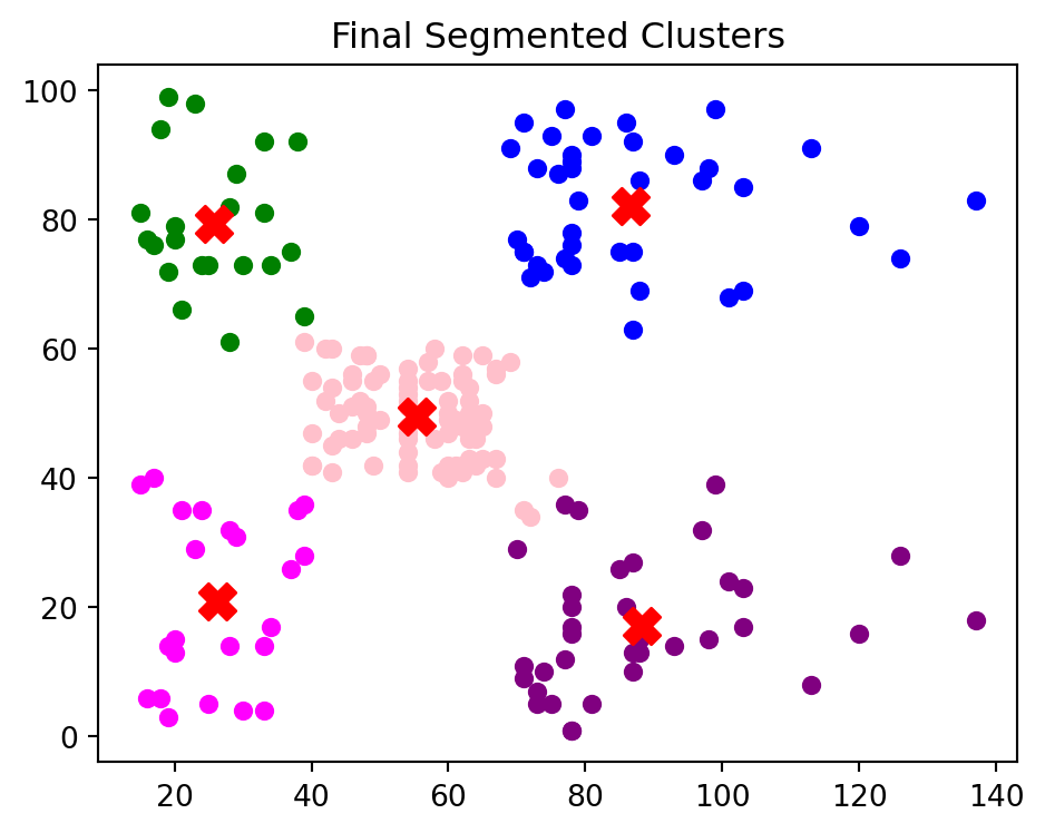 - Convergence: The animation stops once the centroids find their stable “home,” resulting in our five final market segments.